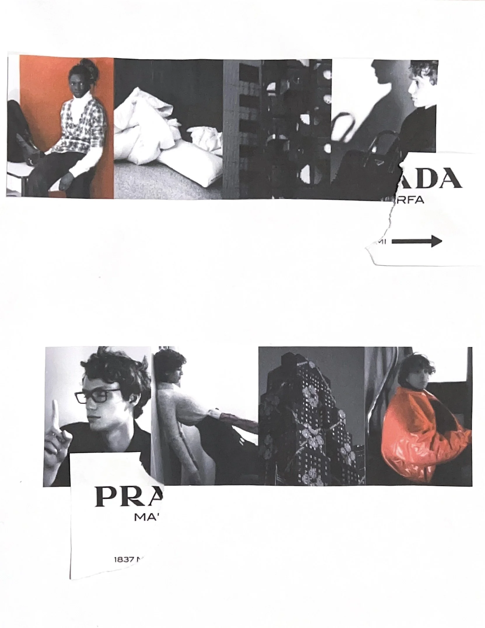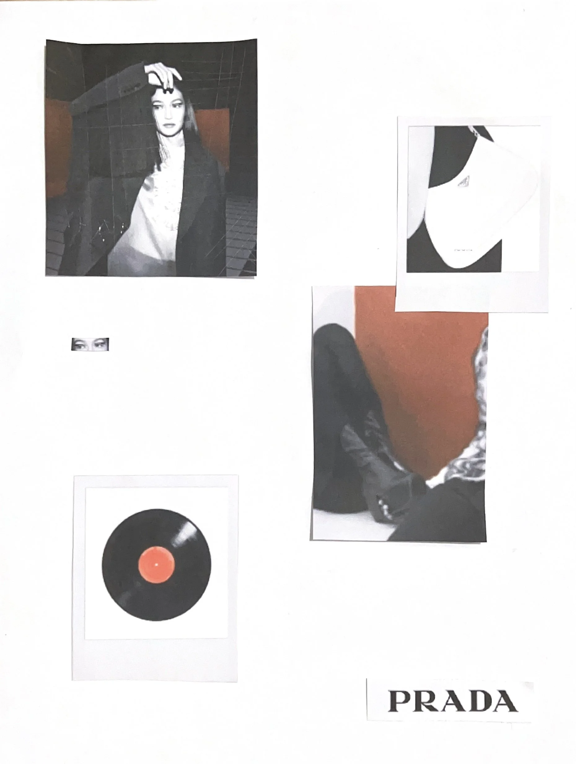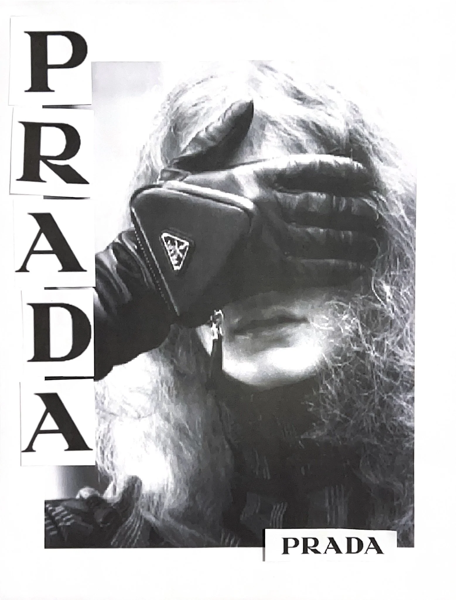 FEELS LIKE PRADA 5 x 4 iNCHESPAPER, MAGAZINE ADS, DIGITAL MEDIA COLLAGED IMAGES AND WORDS CREATED AS AN EDGY HIGH LUXURY CONCEPT CAMPAIGN REIMAGING PREVIOUS PRADA MAGAZINE ADS